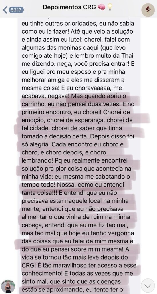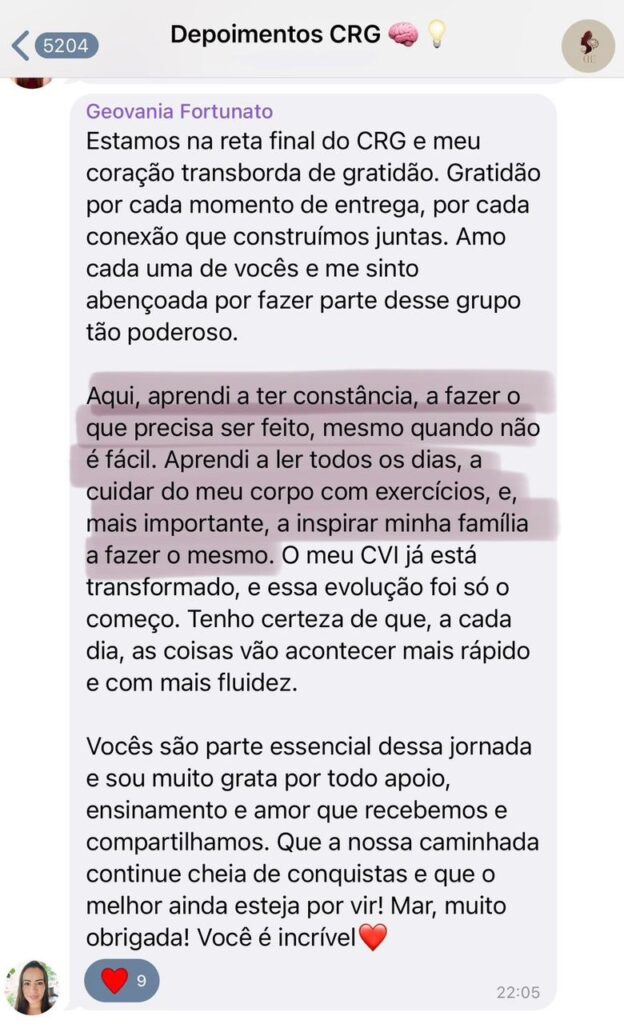 A Juliana afirmou que o CRG faz querer viver, sonhar e realizar!