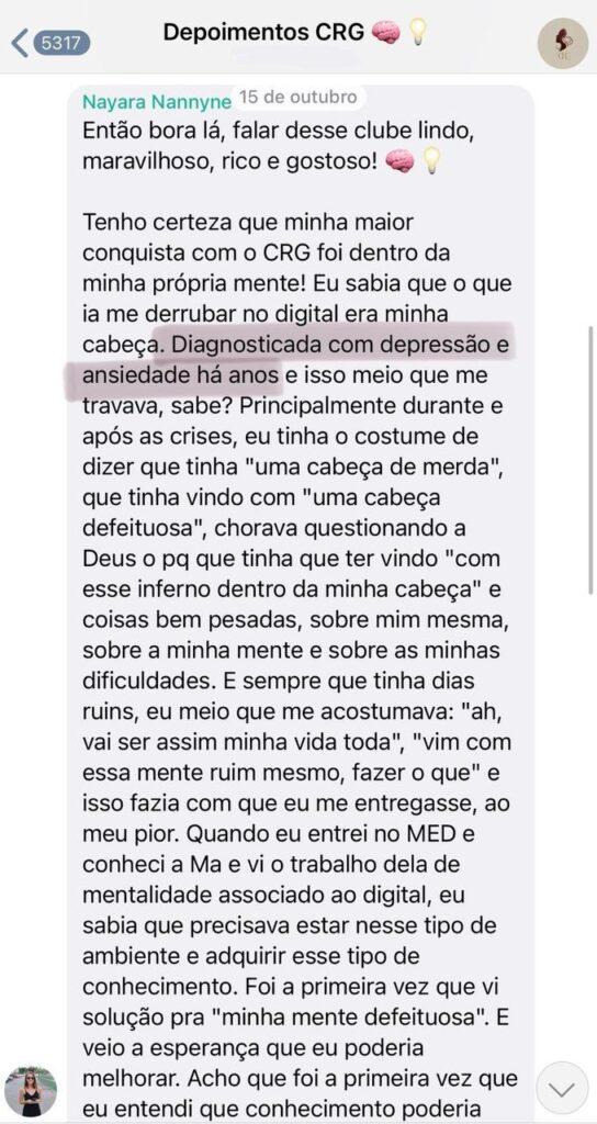 Nayara, que ao entrar no clube, construiu um mental forte e superou a depressão e a ansiedade!